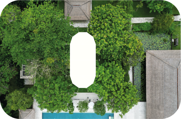 Nestled amidst the breezy hills of Nusa Dua in south Bali, Revivo Wellness Resort is a sanctuary spread across 3 hectares of teak tree forest, enveloped by lush tropical rainforest and the serene Indian Ocean. Meaning "I'll live again," Revivo offers Balinese-style luxury suites and villas, an exquisite gourmet restaurant, a stylish bar and pool lounge, alongside state-of-the-art fitness and spa facilities. The resort is designed to "soothe the spirit, rejuvenate the body, and enrich the mind," offering a holistic mind journey comprising relaxation activities, spa treatments, holistic medicine, and personalized dietary plans based on each guest's DNA and nutritional needs. With our sailcloth tents harmoniously blending with this natural haven, Revivo Wellness Resort is an ideal venue for hosting weddings and events that seek to combine tranquility with luxury, creating unforgettable experiences for every guest.